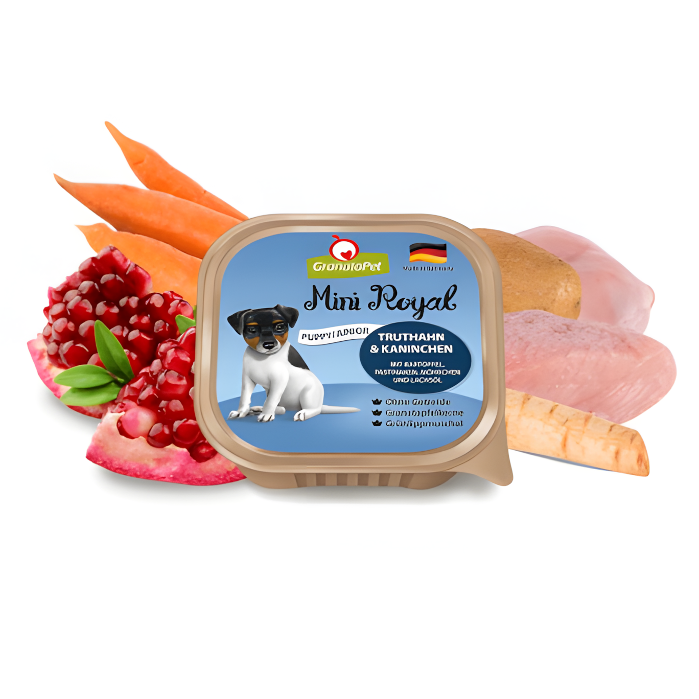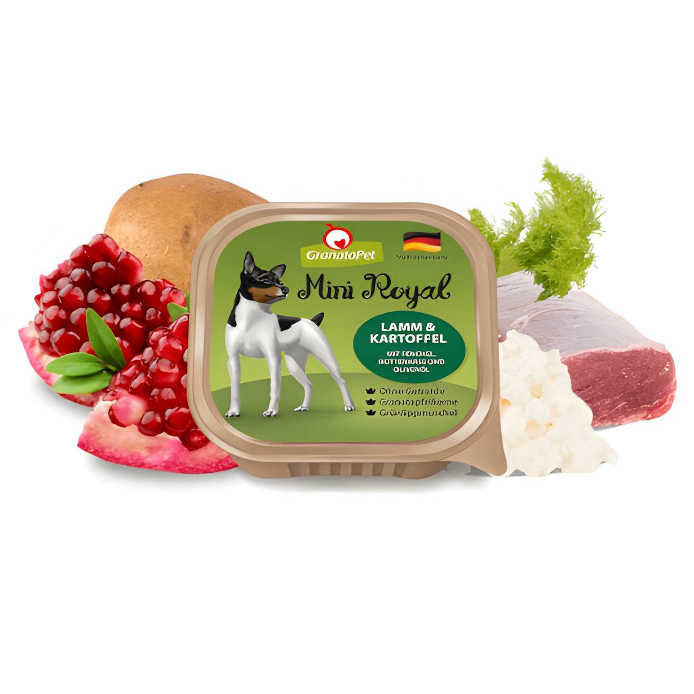 Since our founding, GranataPet has pursued the goal of providing natural, species-appropriate nutrition for dogs and cats. Our commitment begins with our ingredients, which, from meat to vegetables, are of human-grade quality and come exclusively from carefully selected and tested sources. Based on nutritional science, we consciously avoid not only artificial additives and sugar, but also grains in our food to ensure optimal digestibility. All of our product lines, which are manufactured exclusively in Germany, Austria, and Switzerland, stand for a unique and patented recipe that, in addition to a high meat content, is characterized by the eponymous pomegranate seeds, which enrich all of our products with their beneficial properties. As a medium-sized company from the Allgäu region with a team of animal lovers, we also place great value on transparency and customer service and strive to constantly improve. Happy and healthy animals – that is our mission at GranataPet, inspired by our furry friends and supported by nature.